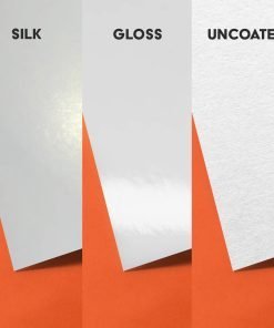 80lb Matte Text: Smooth and glare-free. Better for text-heavy brochures or corporate reports.